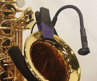 - Spring type clamp with elastic grip and adjustable gooseneck for secure mounting on the horn without scratching or marring delicate instrument finishes.